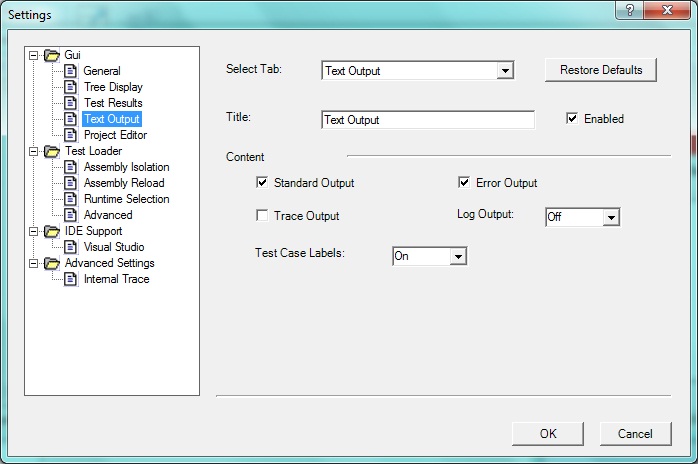 When checked, NUnit captures all output written to Trace or Debug.