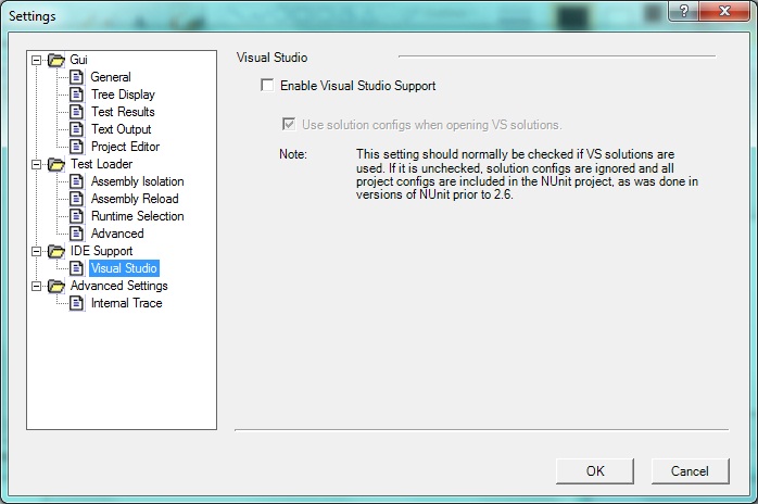 If you select Use NUnit Project Editor, the NUnit project editor is used.